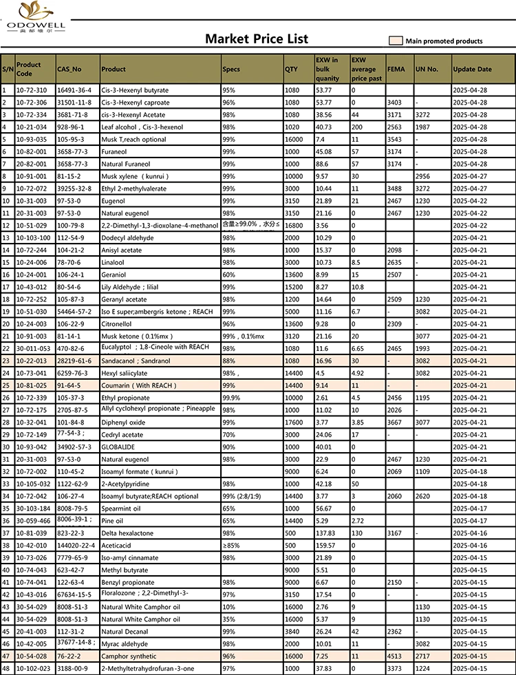 Odowell-markedsprisliste-2025.4.12-2025.04.28 Opdateret efter dato